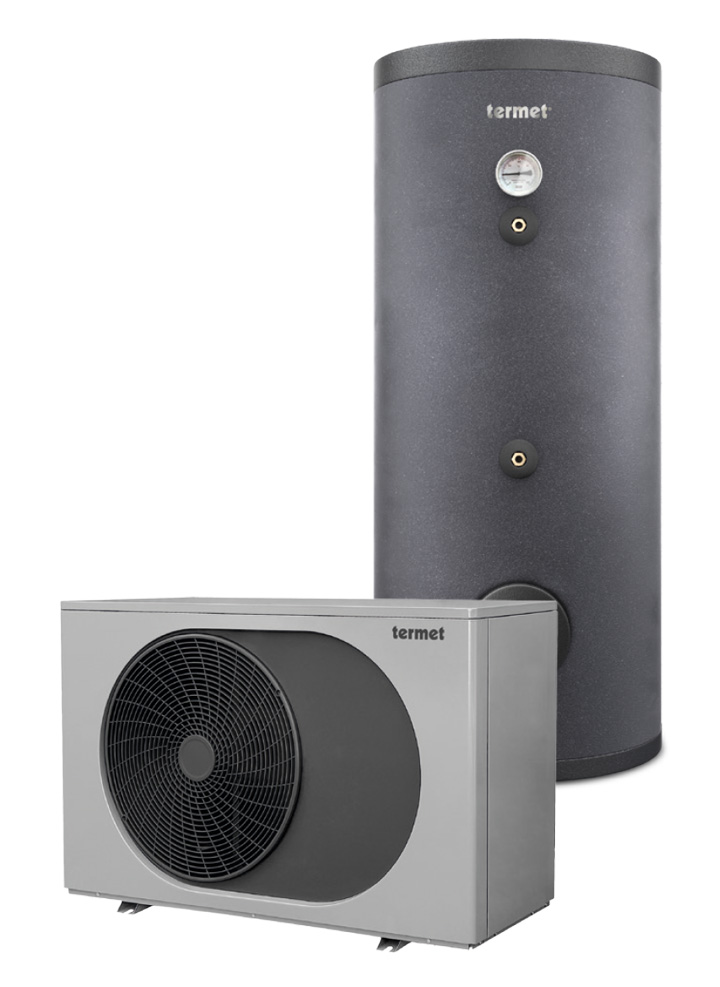 The Termet Heat Gold inverter heat pump is a very ecological heat source designed especially for heating new buildings with low-temperature, e.g. floor heating with a heat loss of up to 9 kW (together with an auxiliary heat source in periods of severe frost). The heat pump also enables hot water heating or cooling of the building in the summer months.• monobloc construction, installation possible only with a heating trade license, installation outside the building• highly efficient inverter compressor from Mitsubishi, electronic expansion valve• ecological refrigerant R32 with low global warming potential (GWP=675)• extremely efficient and economical heat pump class A+++ (A7/W35)• the possibility of cooperation with photovoltaic panels thanks to the SmartGrid function• easy control of the device‘s operation using the HPMulti controller, which is equipped with a touch color display• possibility of remote management of the heat pump via the Internet using the ecoNET300 module• the HPMulti controller and the ecoNET300 module are part of the heat pump Insulated DHW hot water heating tank with two tubular spiral exchangers.• ideal for storing and heating domestic hot water• high-quality thermal insulation in the form of polyurethane foam with a thickness of 50 mm + aesthetic polyethylene cover• the possibility of connecting an electric heater• double coiled tube exchanger ensures a large heat exchange surface for proper cooperation with the heat pump• made of high-quality steel coated on the inside with enamel (including joints, enameled according to DIN 4753-3), together with the magnesium anode it ensures high protection against corrosion• comes with thermometer and temperature sensor cover• maximum operating temperature 95 °C / pressure 10 bar• hygiene certificate for drinking water